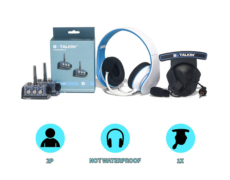 Su geçirmez olmayan stereo kulaklık ve IPX7 göstergeli mono kask pedli kulaklık içeren BbTalkin STANDARD 3.0 2p paketi, su sporlarından keyif alan iki kişi için bir iletişim paketidir. Yan tarafında kulaklık veya koruma bulunmayan herhangi bir standart su kaskıyla birlikte su sporlarında kullanım için idealdir. Bu pakette 1x ikili paket STANDART 3.0 interkom (A02SD), 1x su geçirmez olmayan stereo kulaklık (B06C) ve 1x mono kask yastığı (B02R) bulunur.