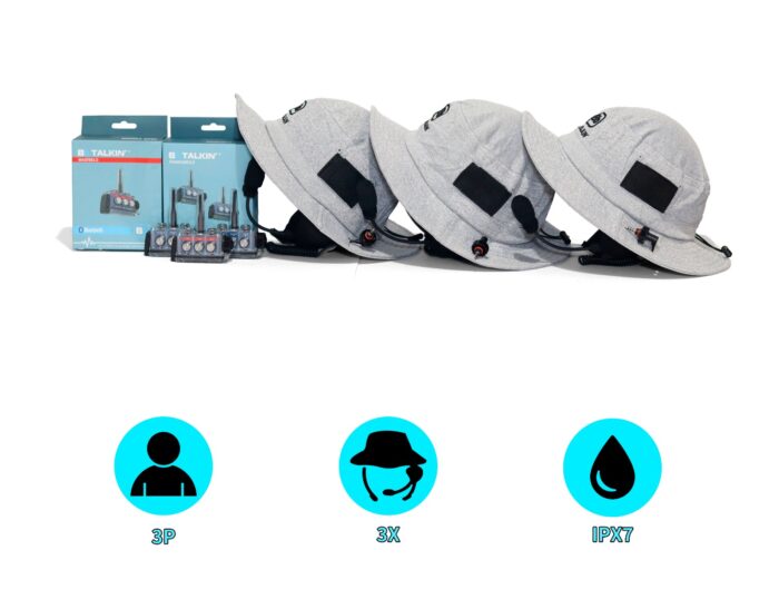 Üç sörf şapkalı BbTalkin 3.0 3p paketi, su sporlarından keyif alan üç kişi için tam su geçirmez bir iletişim paketidir. Kask yerine şapka kullanmayı tercih eden sürücüler için su üzerinde kullanım için idealdir. Bu pakette 1x ikili paket STANDART 3.0 interkom (A02SD), 1x tekli paket MASTER 3.0 interkom (A01MA), 3x hoparlör ve uzun kollu mikrofonla birlikte sörf şapkası (B01HR) bulunur.